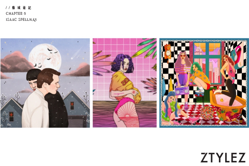 插畫在社交網絡上廣泛傳播,但若要做到不被過目即忘,就要以鮮明風格留住別人目光。 Isaac Spellmen 巫男畢業後從事全職創作不久,便以矚目的復古風格,從芸芸的插畫師中突圍而出。由社交平台上分享 fan art 開始,到受邀為偶像 Lady Gaga 繪製宣傳動態圖畫,近年更獲得時尚品牌、歌手明星、本地媒體等不同界別人士青睞。