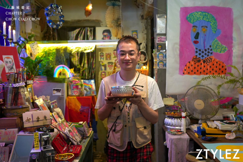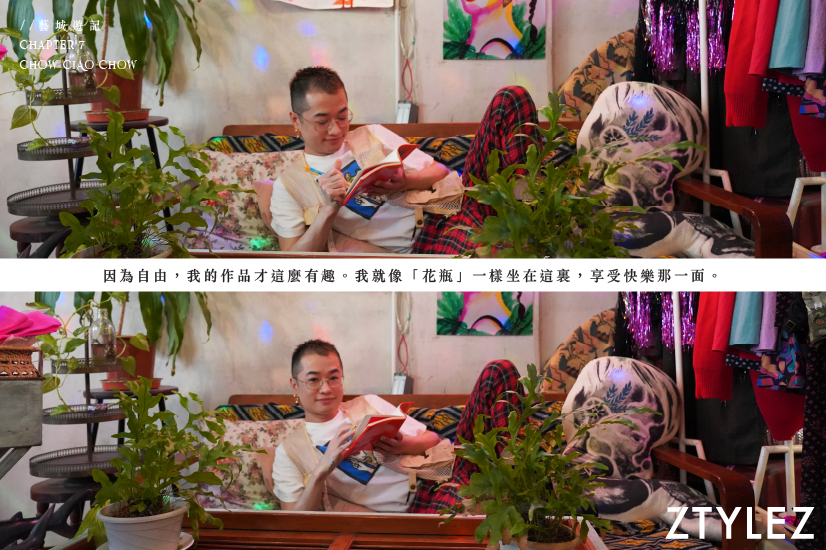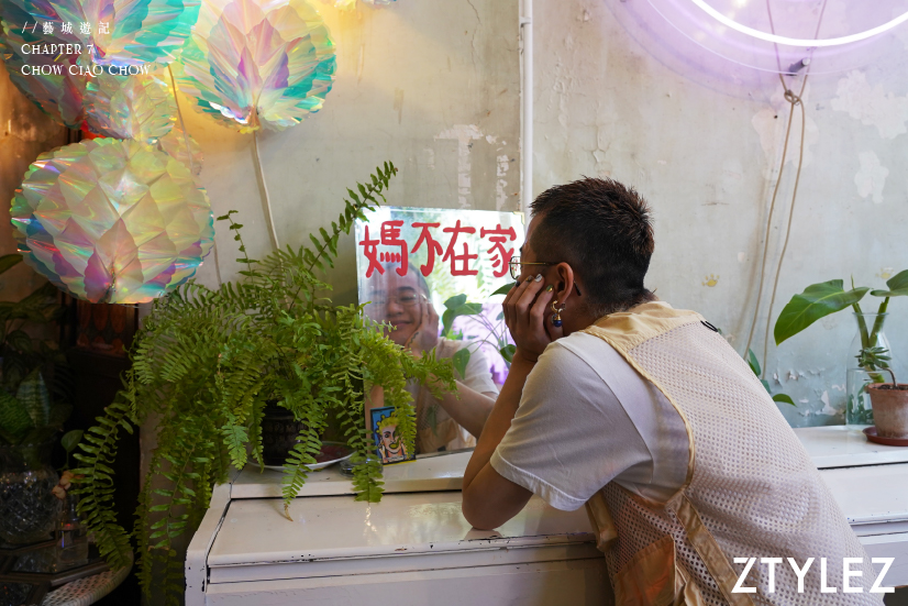 Chow Ciao Chow 是一名香港年輕藝術家,過往從事時裝設計行業,後來自覺不想被勞碌的上班族生活綑綁,在 2014 年選擇與友人開創實驗性空間 MUM’s NOT HOME,無心插柳下展開了全職藝術家之路。外人眼中的狹小空間,卻是他發揮無限創意的小天地。在這裡,他曾幫人剪頭髮,又製作 DIY 商品,亦試過進行縫紉改衣的工作,後來更創立了自家品牌,開始設計自己的商品系列。