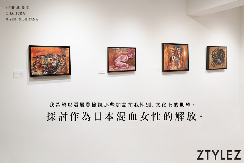 展覽的作品以「女性凝視」的角度出發,Mizuki 大膽地談及對於日本傳統的質疑,以及對於人性的觀察,她表示:「我希望糾正這些觀念,糾正那些對我的性別、文化上投放的期望,它探討了作為混血日本女性的解放。而我關注的都是人性,是我自身作為女性、作為人類的一種經歷。」