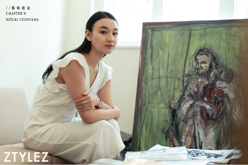 年僅 23 歲的西山瑞貴擁有香港與日本血統,出生在藝術世家,母親、祖母皆是獨當一面的藝術家,而其日本籍父親則為時尚品牌擔任創作總監一職。自幼在不同視覺美學的薰陶下,Mizuki 也自然而然地踏上創作之路。因為家人緣故,她多年來不斷遊走香港、日本、紐約、意大利等地學習與生活。在這樣的成長背景下,她如海綿般吸納了不同城市給予她的文化滋養,其創作結合東方文化的底蘊,以及西方抽象表現主義的手法,開拓出別樹一幟的藝術風格。