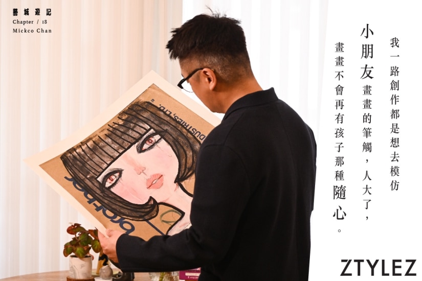 Mickco 筆下的角色充滿一種時尚靈氣,但又不失率真的稚氣感,如同他本人一樣,散發著親和力。Mickco 笑言以前總有人評論他的作品就似是孩子畫的畫,不過原來這正是他一直追求的事。他跟我們分享:「當人大了,你畫畫不會再有小朋友那種隨心 ,其實某程度上,我就是一路去練習怎樣重回像小朋友那般去畫畫。」