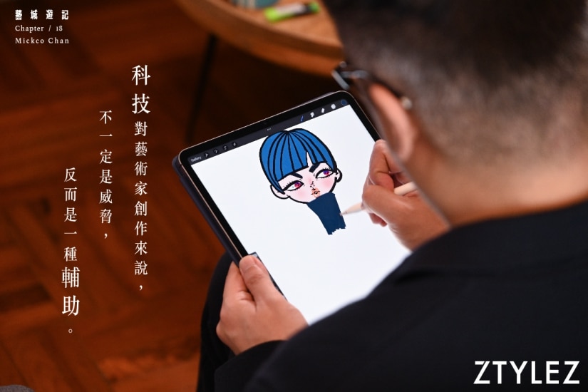 而在 Mickco 的自身經驗上,從手繪、電繪、數位創作 、人工智能藝術等,他一直銳意進取,向大家展示藝術的不同面向。他表示:「科技一直向前行,我們應該改變思維,學習運用它去幫助自己創作。」