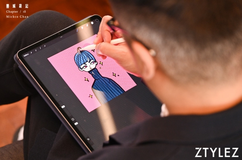 從插畫起家,後到打入香港時尚圈子,Mickco 自言自己是比較幸運的一群。平時除了埋首創作,他不時受邀出席一些品牌活動。平時工作需要周旋於熱鬧的人群裏,而創作時則相對需要個人空間,他笑言學懂如何抽離很重要。