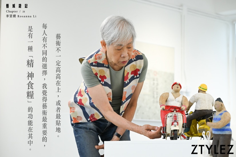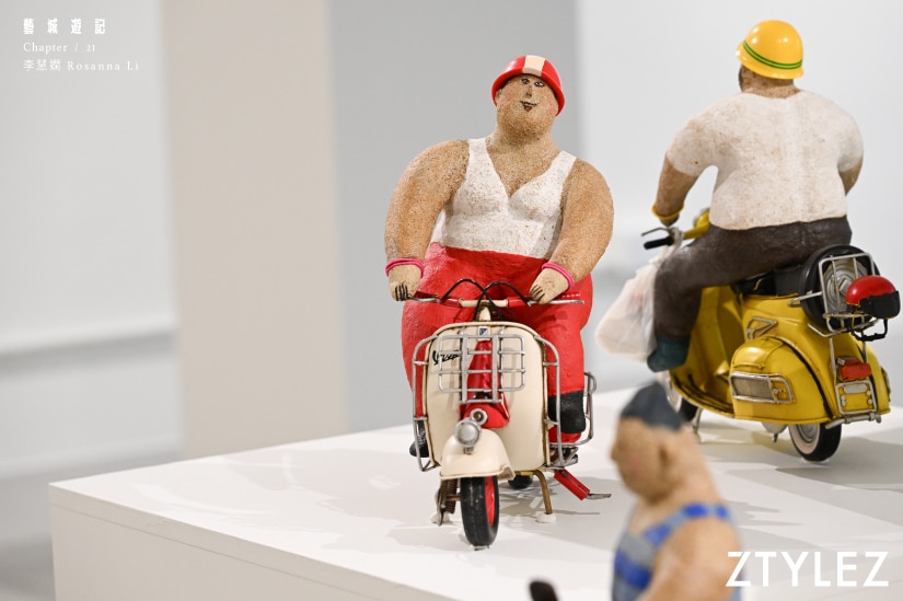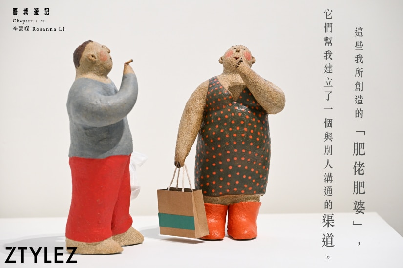 無論是手掌大小的陶泥公仔,還是比真人還高的公共空間雕塑,這些「胖子」無一不是悠然自得的樣子,散發著一種和樂與喜悅。畫家以色彩繪出筆下人間,陶瓷家則用雙手捏出世情百態,無論使用的媒材是有形或無形,那都是承載著藝術家對生活的千般感悟。而在李慧嫻的陶瓷世界中,這些俏皮的人物角色從香港地的日常生活走出,或正要去街市買菜,或正騎著電單車送外賣,向你講述的正是最真實、最純粹的香港故事。