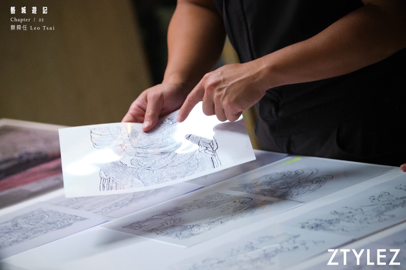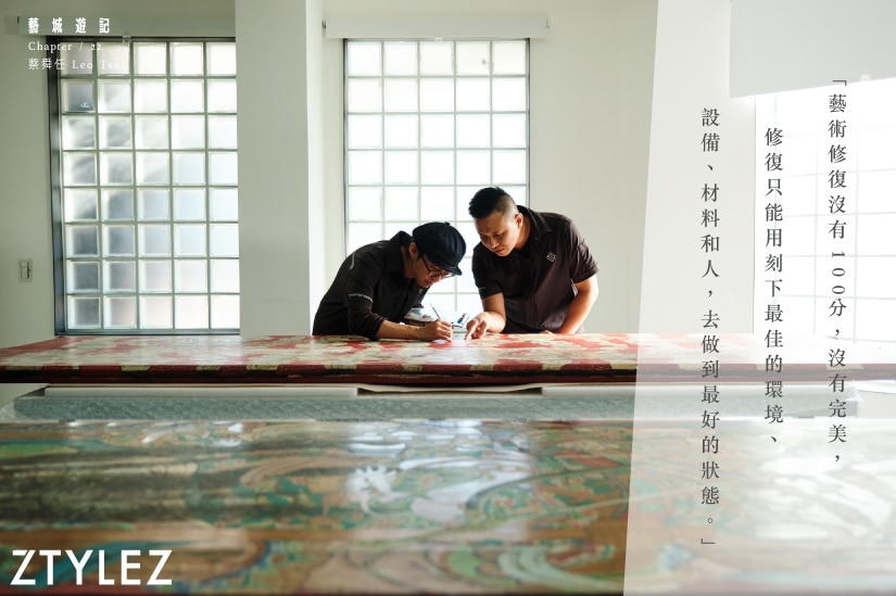 與修復大師蔡舜任共處半天,會感受到他的時間表裡頭沒有停頓,不放過拍攝與採訪間的微碎時間裂縫,他東奔西跑核對同事於修復案例中的用色是否準確、跟進行政同事對外聯繫事宜⋯⋯也突顯TSJ修復團隊有多忙碌。