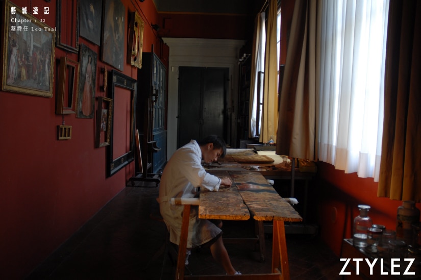 清空無翳﹐專於當下,需要絕對幽靜的環境,也許是讓出生高雄的蔡舜任選址台南作為修復基地的原因?他風趣說:「你不覺得在台南做修復很合理嗎?譬如在米蘭不會說做修復,而是做Fashion一樣。而且台南為團隊提供一處寧靜的工作環境。」府城獨有的慢活節奏與文化底藴,與他過往長居的意大利佛羅倫斯的古城氛圍相類似,也是當初將他牽引來的原因之一。
