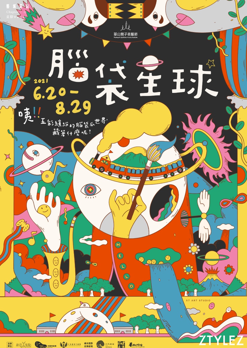高䠷身型搭配一頭烏黑捲髮,沉默時宛如躲進自己的星球,關於創作的話匣子一打開卻滔滔不絕,吳騏以本名諧音取名57,游走於商業與藝術之間。他筆下的奇幻樂園從畫布,延伸至建築物外牆,籃球場,作品遍布台灣,尤其家鄉金門;亦跨越媒介,捏造陶作,製作大型藝術裝置。這幾年無論是商業領域,以至公共空間都見其作品蹤影,從台北萬華區的街角改造計畫、台南藍晒文創園區、 金門海洋藝術季以及風獅爺彩繪籃球場;更飄洋過海到上海七寶寶龍城的大型壁畫、鳥人鞦韆。今年年初於台北的第34屆臺灣燈會,他以雲、木、水、光、風、地元素,創作出三組名為《森靈系列》的巨型燈飾,再度驚艷藝文界。