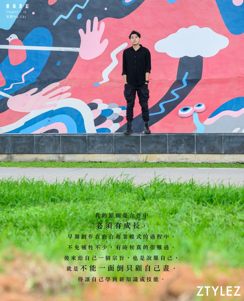 提及IP藝術,吳騏怎看香港的藝文發展?他誠懇說:「我很喜歡香港的藝術氛圍,我哥之前想參加香港的展覽活動,主辦單位表示必須有明確的IP,也是說香港的IP角色發展很純熟,插畫師必須有強烈的IP才能被看見。」藉由過往的聯展經驗,令吳騏接觸到香港新一代藝術家,如《藝城遊記》四月號專訪的香港插畫師林雅儀 Zoie Lam,奇妙的緣份令他們成為朋友,彼此交流創作點滴。