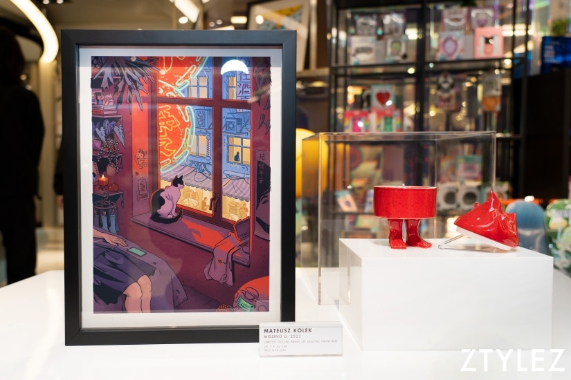 Mateusz Kolek 的作品一向以俏皮、活潑迷幻的風格著稱。今次他特別創作四件以香港為主題的作品,每幅畫作都承載著一份戀愛心情。縱然彼此有著不一樣的經歷,但希望大家可以通過畫作分享故事。我們不難從 Mateusz 的作品中發現滿滿的香港元素:車水馬龍的街道、霓虹燈、夾公仔機等,都是與我們生活很靠近的東西。一個外國畫家眼中的香港,確實讓我們感到熟悉又具親切感。