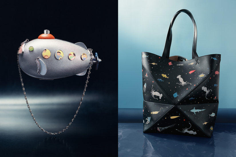 這次,他們就構思了一系列全新插圖及陶瓷作品,如穿梭於一幕幕童真夢境,分別有來自深海、綠茵草地和遙遠外太空的趣致動物,全都化身為手袋、成衣及配飾上的主角,例如:八爪魚與烏賊圍繞著 Flamenco 及 Hammock 手袋起舞;一頭巨鯨滑過 Puzzle 和 Pebble Bucket 水桶袋,這些動物角色披上海洋色調,以精緻皮革鑲嵌技術製作;而活潑的兔子與淘氣的倉鼠,則點綴了泥土色及翠綠色經典手袋款式、小皮具、肩帶、小包,以及有刺繡、印花和閃爍水晶的配飾,十分可愛。