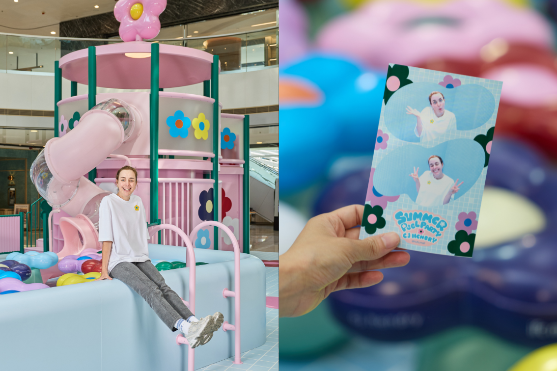 《Summer Pool Party》一共分為四大夢幻打卡點,包括:從高處滑入色彩繽紛的「夢幻旋轉滑梯」、徜徉於搖曳巨型花朵的「夏日花花池」、「Smile & Snap 照相館」拍下歡樂瞬間,以及可享用限定氣泡特飲的「Welcome Bar」,感受沁涼夏意。