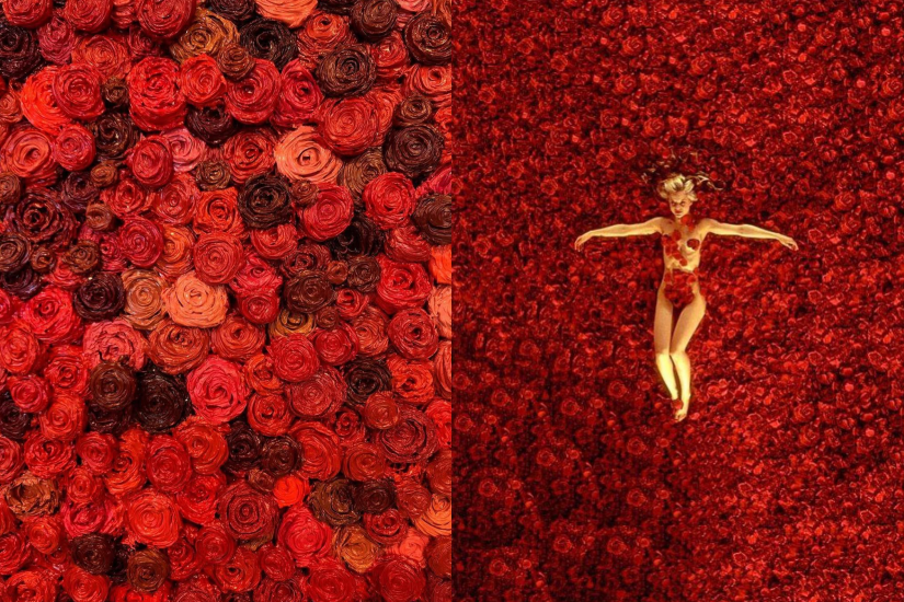 而近期最為引起關注的,正是他今年 6 月 10 日退伍之後捧着鮮花的照片,背後的巨大紅色藝術作品,正是出自韓國當代藝術家禹國權(Woo Kukwon)的作品。1970 年出生於釜山的禹國權,作品風格獨特,以瘋狂而詭譎的美感聞名,經常探索人物內心世界與社會壓力間的張力。