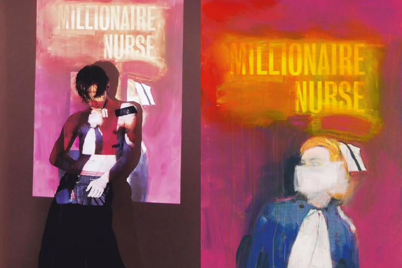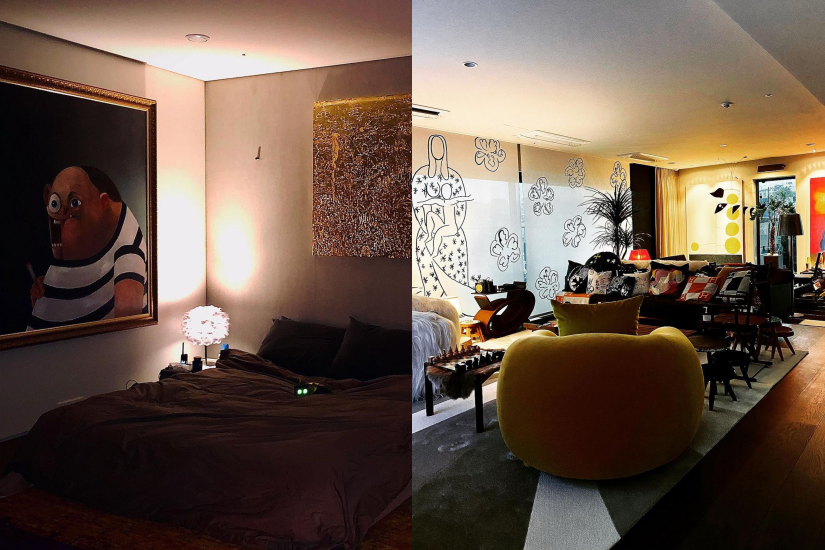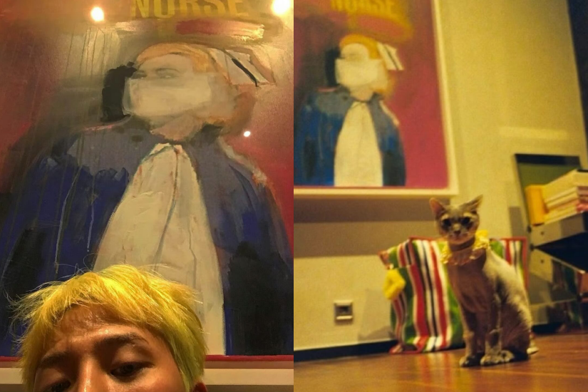 其中一幅出自美國藝術家 Richard Prince 的名作《Millionaire Nurse》,更是喜歡並收藏了已久的畫作,價值高達 330 萬美元,過去也不時會出現在他的 Instagram 上,還有畫作與其愛貓 lye 的合照,甚至把它寫進 2017 年所發行的專輯中一首名為《神曲》(신곡)的歌詞裡。