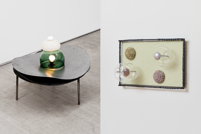 S:我很著迷居家物件,像 mid-century、丹麥設計、新藝術風格,還有義大利的 Sottsass 派別。特別是在逛二手店和跳蚤市場時,總能找到令人怦然心動的東西。而金屬和玻璃在燈具、桌檯上常見結合,這讓我想嘗試把它們放進作品裡。