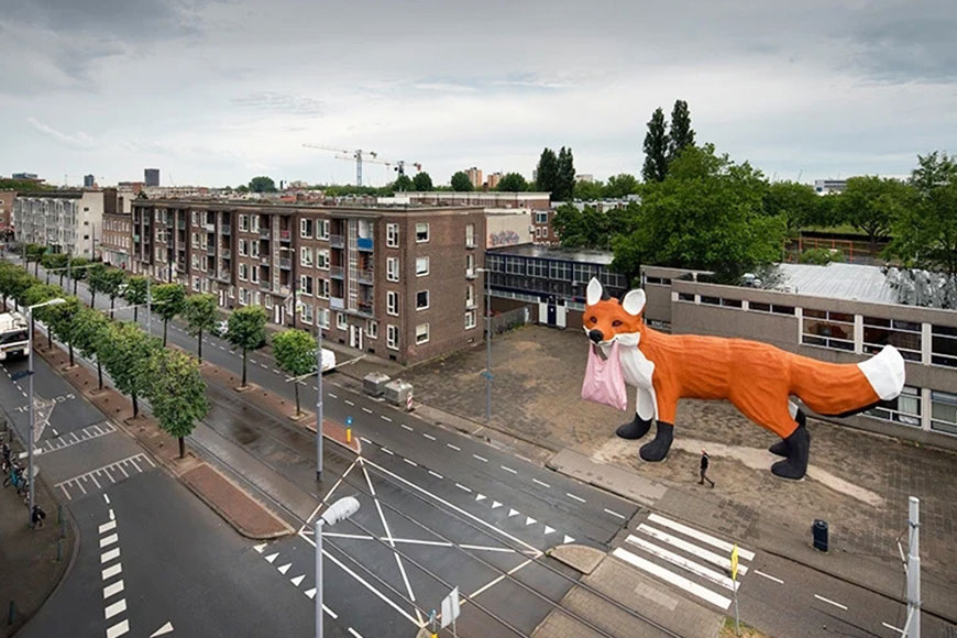Florentijn Hofman 的新作名為 “Bospolder Fox”,是一隻總長 16 公尺的巨型狐狸,造型可愛討喜,如今正身在荷蘭南邊的城市 Rotterdam,成為當地最矚目、最新的藝術潮聖點!