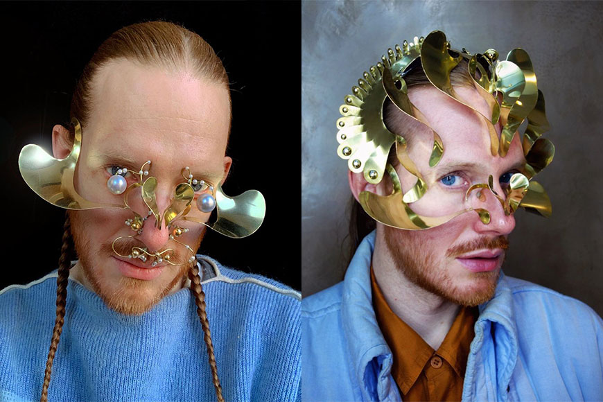 Tida Swinton 的金屬面罩不是時尚品牌為她度身訂製的精品,而是出自一位名為 James Merry 的藝術家之手。James Merry 出生於英國,曾於著名學府牛津大學研究古希臘文,他除了對古文明擁有濃烈的興趣之外,也鐘情於刺繡、編織藝術。現在長居冰島的他,就把自己的各方喜好匯集,專注藝術創作。