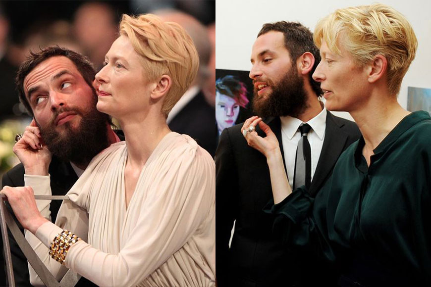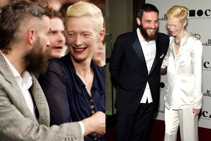 Tilda 曾經與蘇格蘭編劇 John Byrne交往,並於 1997 年為他誕下下龍鳳胎,但二人由於 2003 年分手,隔年,Tilda 即與德國藝術家 Sandro Kopp 熱戀至今,而這位 Sandro Kopp 就是本文主角,能夠令冰山美人笑逐顏開的男人!