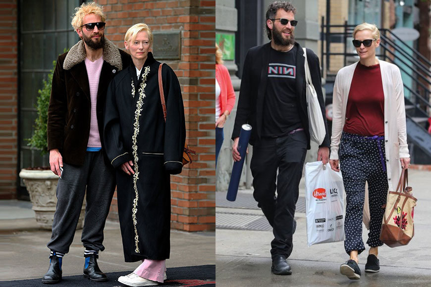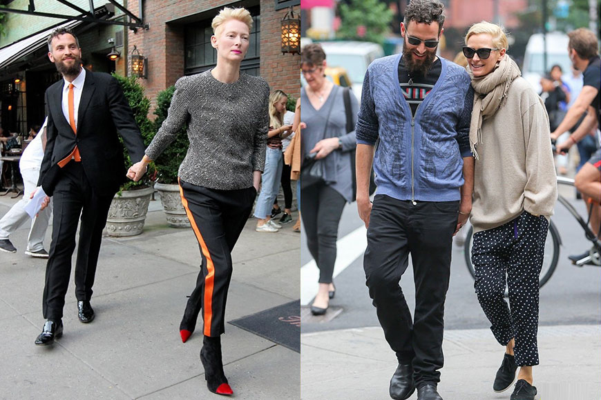 就算在鏡頭前永遠高高在上,在國際影圈也擁有崇高地位,但 Tilda 私下與男朋友的生活與一般的戀人無異,他們外出時都會互相依偎,談笑風生,更不時會以低調的情侶裝打扮示人,恩愛非常。