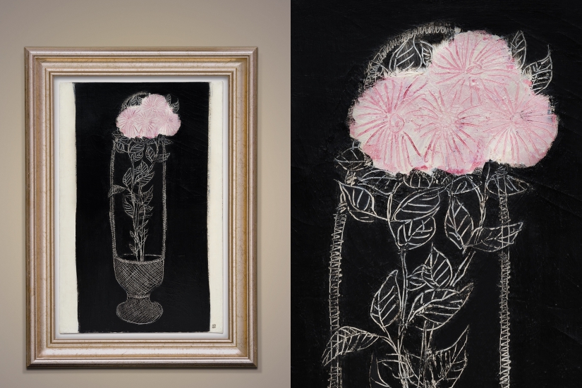 在年底的登場的《籃中粉紅菊》,是常玉在1931年創作的著作,亦即是常玉剛剛踏上生涯首個藝術高峰的時期,擅長展現線條表現和情感的常玉,更憑著《籃中粉紅菊》上枝葉和花籃的穿透性線條表現,創造出蘊含深邃的空間感,令當時相當欣類中國繪畫的西方藝術派別重新新識了中國藝術作品、線條觀感及常玉本人。