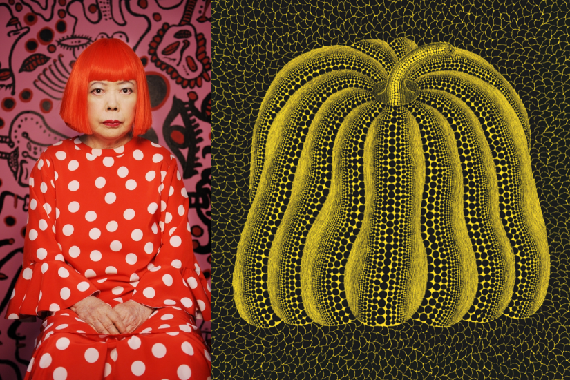 南瓜是草間彌生藝術世界中最受推崇的題材。藝術家出生於日本長野縣松本 市,小時候她對家中育種田裡的南瓜深深著迷。1940 年代初,她開始產生幻 覺,在同一時期,她開始畫南瓜。