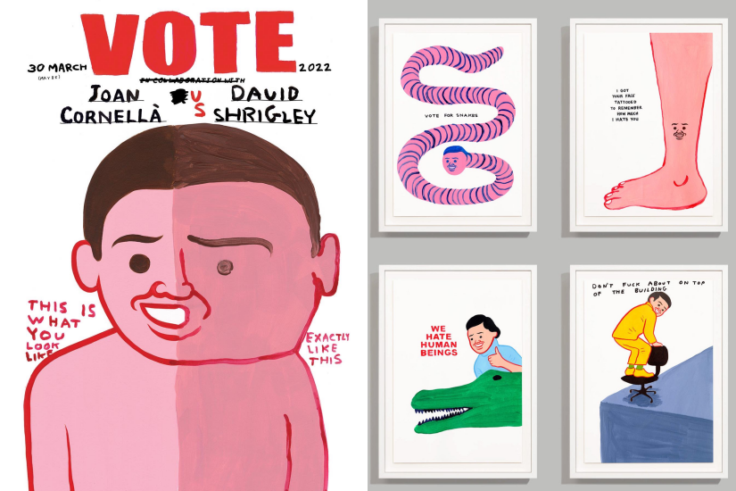 由藝術創意單位 AllRightsReserved 牽頭,這次 Joan Cornellà x David Shrigley 的聯乘系列名為「VOTE」,兩位藝術家將會合力創作一套 8 幅的絲網印刷品,作品高 432 毫米、闊 324 毫米,共限量 125 套,每一幅畫作都帶有相應的簽名和編號。