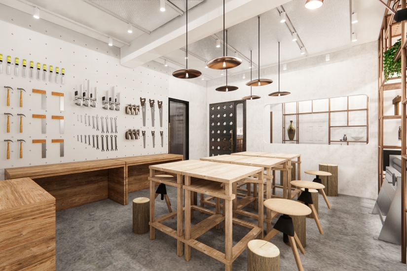 空間由本地創意機構 House of Forme 設計,裝潢充滿金屬和木材元素,靈感源於香港隨處可見的竹棚架,地道風味十足。全新「日出金工」工作坊由原先在良晨珠寶旗艦店陳列室中的工作坊企劃拓展而成,將全年舉辦常設活動。對金工有興趣的公眾更有機會在本地頂級工藝師及金工工匠的指導下,親手製作金工製品和珠寶。