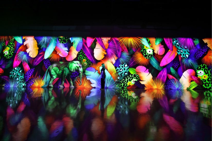 展館將會帶來 4 個主題不一的空間,設計團隊將鮮花的生命力、洶湧澎湃的巨浪、一望無垠的海灘、熱帶雨林中的叢林等 6 個作品描繪得栩栩如生。聽著海浪及鳥語聲,繼而漫步在這些美輪美奐的光影之下,個個都如親歷其境,視聽效果都相當震撼!