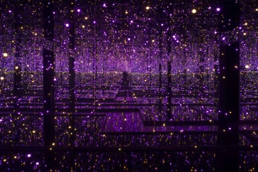 當時草間日夜堅持創作,發展出一條獨特的藝術路線。1965 年,草間彌生在紐約畫廊創造了世界上首個鏡屋裝置,是無限鏡屋的前身。她前衛的創作想法甚至被當時一些更有名氣的藝術家模仿,然而竊取意念者卻比她獲得更大關注,這讓她感受心灰意冷,甚至萌生出自殺的念頭。