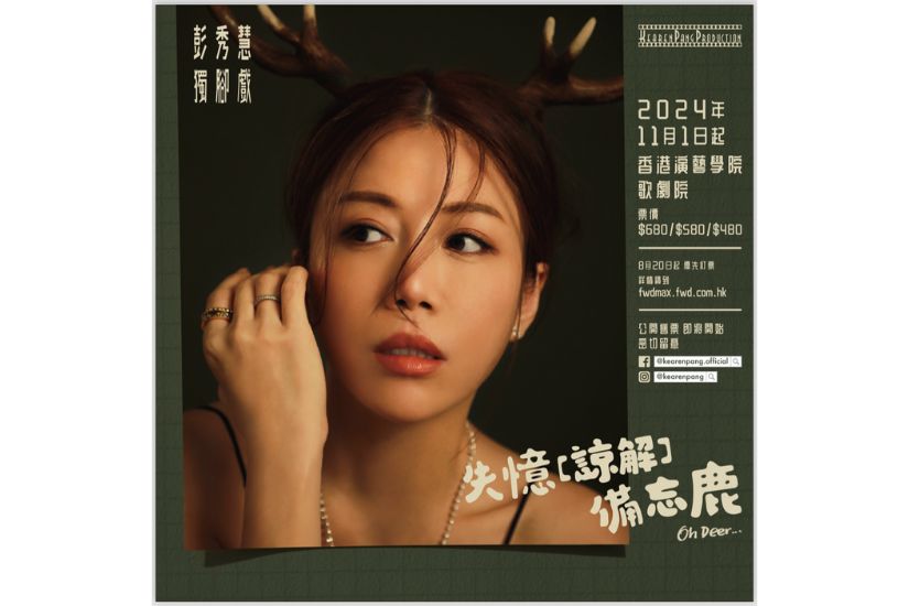 近年作多棲發展的彭秀慧(Kearen),每每都令觀眾大為驚艷。而自 3 月出演了風車草劇團 2024 全新原創劇作《亞娜》過後,這次由 Kearen Pang Production 主辦,Kearen 迎來了自編自導自演的全新獨腳戲《失憶【諒解】備忘鹿》。這是 Kearen 繼《29+1》、《再見不再見》、《月球下的人》及《Tiffany》後,時隔 10 年終於以全新劇本,再回到與劇場觀眾最初相識之處。