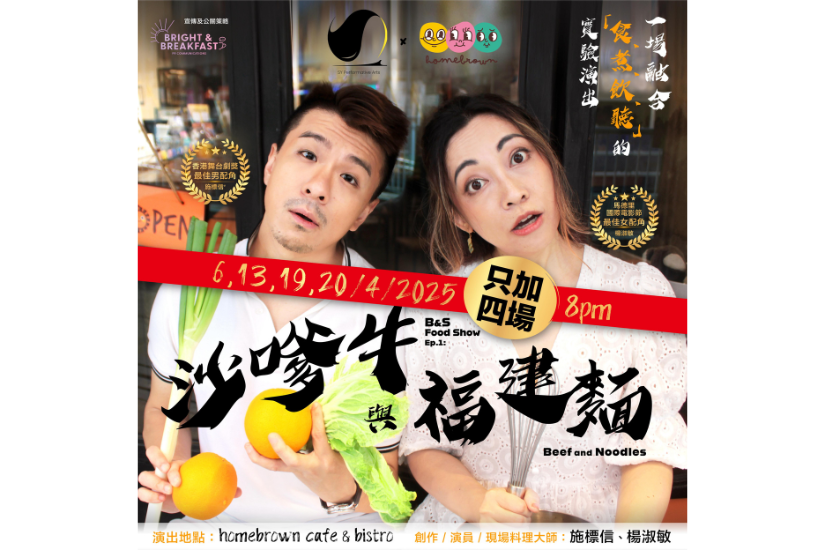 《沙嗲牛與福建麵》不僅是一場演出,而是一次徹底打破觀演界限的沉浸式體驗 —— 由香港舞台劇獎最佳男配角施標信(Billy Sy)與 Madrid International Film Festival 最佳女配角楊淑敏主演化身為「現場料理大師」,親自烹調四道菜輕量晚餐,配合 Jason Szeto 的現場音樂演奏,將傳統劇場轉化為充滿儀式感的飲食空間;觀眾不再只是靜靜欣賞表演,而是與演員一同經歷食物從準備到享用的全過程,聆聽每道菜背後的故事,感受食物如何成為記憶與情感的載體。