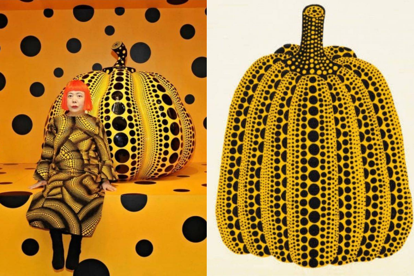 在藝術界有「波點女王」之稱的日本藝術家草間彌生(Kusama Yayoi),同樣對食物情有獨鍾。雖然她並沒有放在牆上、也不是用新鮮蔬果所製作,更沒有被偷去,但是南瓜可算是她的代表作之一。