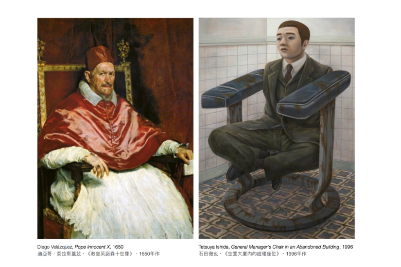 椅子,在歷史中從來不僅僅是一件家具,它更是一個象徵身份、地位與權力的符號。從古代君王的御座到現代高管辦公室的皮椅,椅子始終承載著權威與階級的象徵意義;而藝術家也常以椅子為媒介,揭示更深層的社會批判與哲學思考,如英國畫家法蘭西斯・培根在代表作《拉斯奎茲教皇諾森十世肖像研究》(1953年)中,將教皇置於一張抽象的扶手椅上。教皇雖身穿紫色聖袍,卻彷彿被困在透明籠子裡,痛苦地吶喊。培根借用拉斯奎茲的經典肖像,重新詮釋了權力與痛苦的糾葛,揭示即使至高無上的教皇也無法逃脫時代的壓迫與人性的脆弱。
