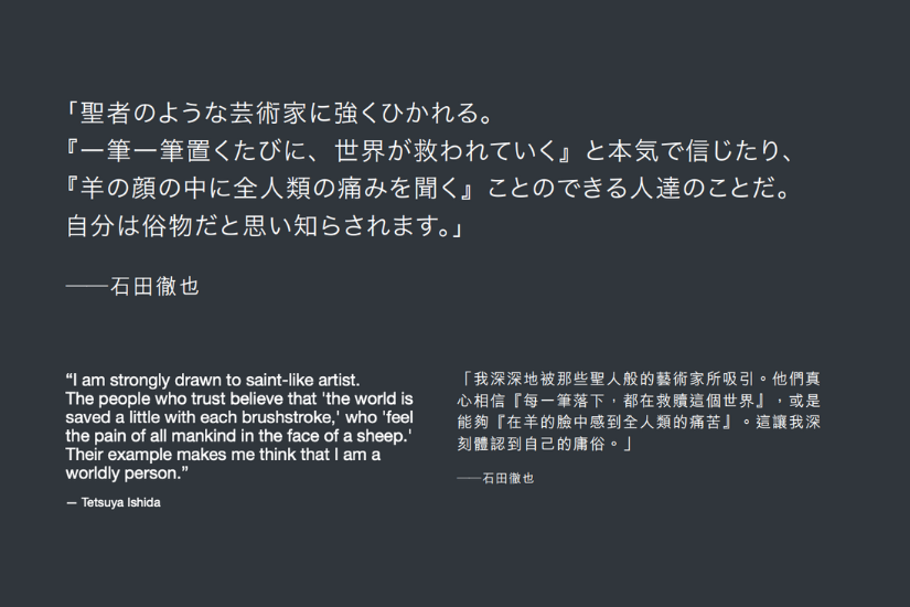 而石田透過這幅作品傳遞的信息超越了日本社會,成為全球化時代下,所有被資本主義系統異化個體的共同心聲。
