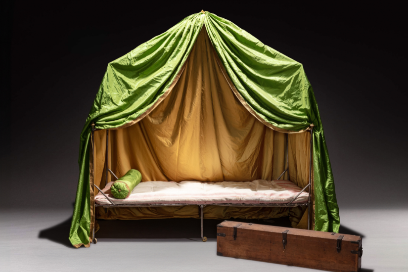 皇帝最喜愛的摺疊「行軍床」同樣引人注目。由德蘇什神父(Father Desouches)專為拿破崙設計,這款巧妙的便攜式寢具陪伴他征戰四方,甚至在聖赫勒拿島的流放歲月中仍伴隨左右。