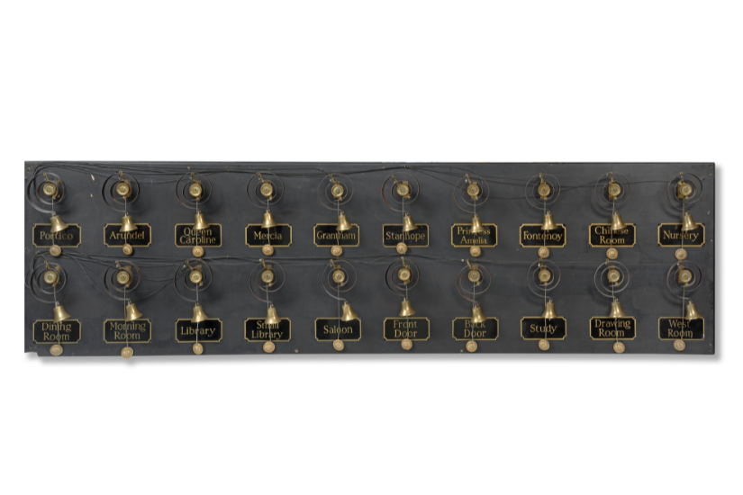 除了華麗的戲服外,此次拍賣也將呈獻多件具有象徵意義的道具,其中最具代表性的,正是唐頓莊園內的僕人鈴(Bell Wall,估價 5,000-7,000 英鎊)。那面 20 枚青銅鈴的鈴牆,是貴族與僕人之間溝通的紐帶,每一次的鈴聲都代表著兩個階級之間微妙的互動關係。在劇中,這面鈴牆見證了唐頓莊園從僕人眾多的輝煌時代,到隨著時代變遷而不斷縮減人手的過程,是階級制度轉變的最佳象徵。