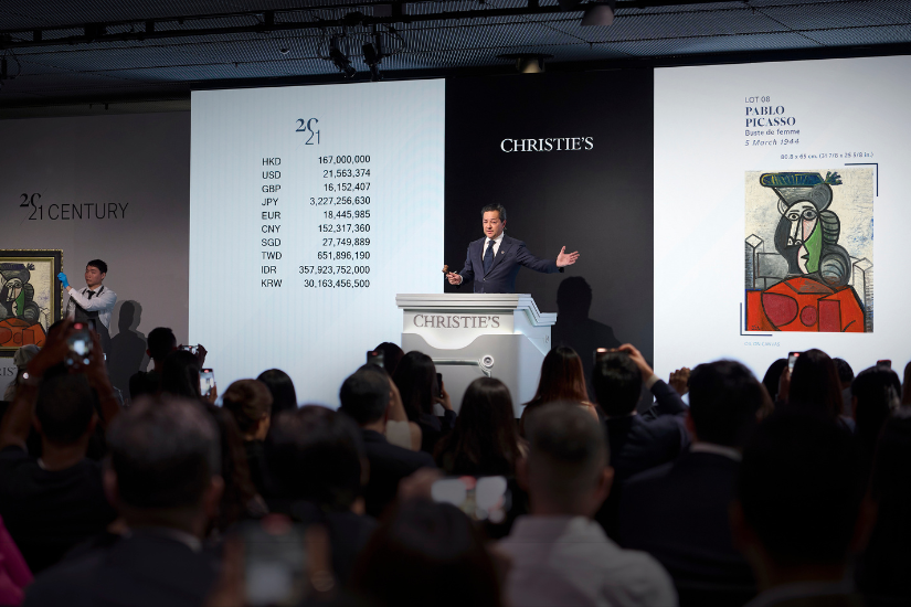同場還呈現了畢加索 1969 年創作的《男子半身像》,成交價高達 2,500 萬港元(約 320 萬美元),以罕見的瓦楞紙板為媒材,展現了畢加索晚年創作的自由不羈與放鬆心態,與佳士得的《女子半身像》形成了有趣的時空對話。