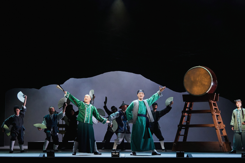 八年過去,在香港原創音樂劇《大狀王》的舞台上,這面鼓已變成了標誌性的印記,每每看着演員穿梭鼓旁、舉扇而舞,圓鼓如同訴訟場上無形的辯詞,一次次敲擊著觀眾心弦;而那面鼓,也使人走出劇場時,心頭依然回蕩著它的迴響。