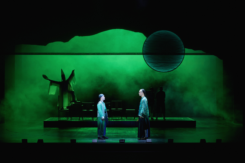 一抹綠色成為兄弟情深的暗號,一道藍光則瞬間把舞台推向反派的陰影。色彩在她的調度下,化為無聲的旁白,既節制又精準,讓觀眾隨故事流轉而感受善惡的重量。「所有顏色的運用,我們都是控制得非常細緻,比如某些場景中的椅子會出現一種淡黃色,但有些時候椅子的顏色會偏向啡色,更似是一張中式的啡色椅子,而服裝設計也如是,都是經過多次調整才達到理想的效果。盡量減少顏色,能讓主角的顏色更突出,最明顯的例子就是〈終審〉那場戲,整個場景幾乎都是黑色。」Jonathan 道。