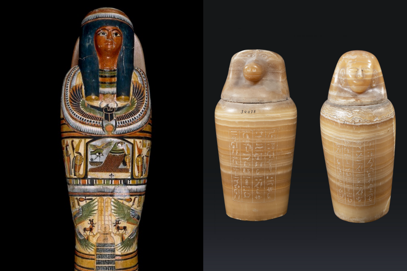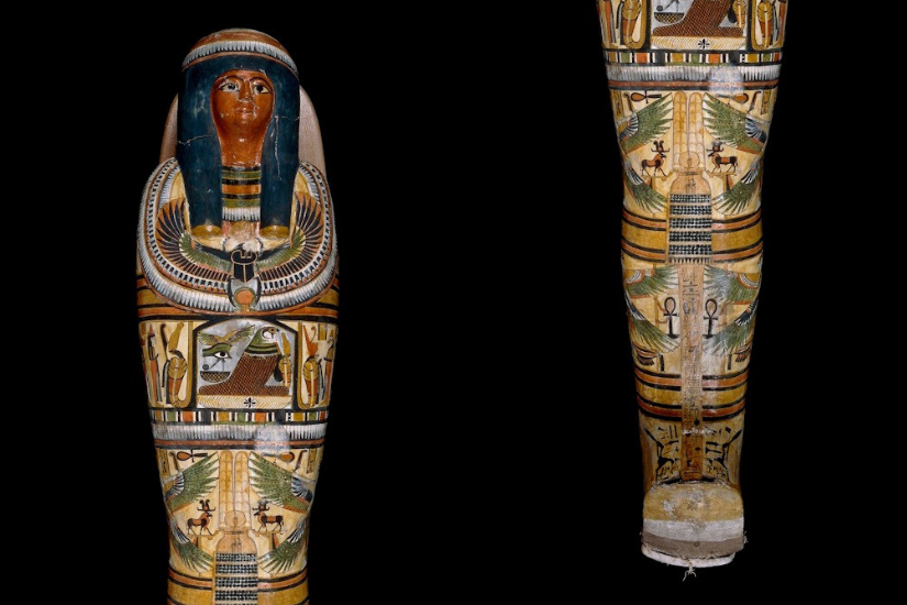 埃及木乃伊棺在製作過程中象徵對逝者身心的守護,為古埃及葬禮儀式的重要元素。此棺以西元前 800 年第二十二王朝祭司內斯佩倫努布的紙莎草棺為原型,外層塗石膏,飾以荷魯斯四子守護內臟、伊西斯與奈芙蒂斯展翼護佑,以及太陽神拉的聖甲蟲,展現對永生的信仰與靈魂重生的祈願,現藏於英國大英博物館 62 號展廳。