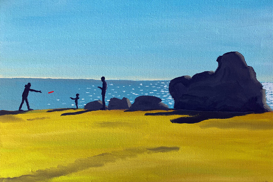 Jean Jullien 繪下了家人們一起看海及到戶外玩耍的片段,記下了寧靜而美好的家庭時光,帶出溫馨的感覺。除了室外,他的作品亦包括一家人圍著餐桌吃早餐、在家中做瑜伽等畫面,看到這些簡單而美好的生活日常,是否也讓你有所共鳴?