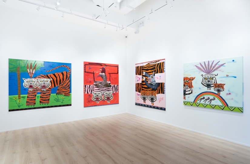 日本藝術家加藤泉的藝術創作在虛實相生之間,有如一段進入自身人性意識的旅程。《無題》是三件一組的青銅雕塑,演變自 2016 年開始的石頭系列。加藤泉在作品之中透過鑄銅保留石塊的原始形狀,局部手繪的銅塊,標誌著藝術家在形式和材料上的探索。每件雕塑有如一座累疊而成的人形紀念碑,圓睜二目,佇立在此,描繪了遙遠的未來,也隱藏著神秘的過去。