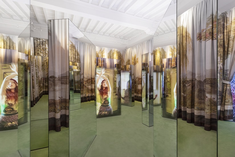《Gucci Garden Archetypes》有如 Alessandro Michele 的異想世界,展覽游走於東京與洛杉磯、英國 Northern Soul 騷靈音樂運動與法國 68 年 5 月運動之間,而神秘的方舟建造者、星際探險家、駿馬、舞者、天使和外星人更紛紛於展場之中現身,呼應 Gucci 近年穿梭於音樂、藝術、旅遊和流行文化等領域的多個廣告企劃。