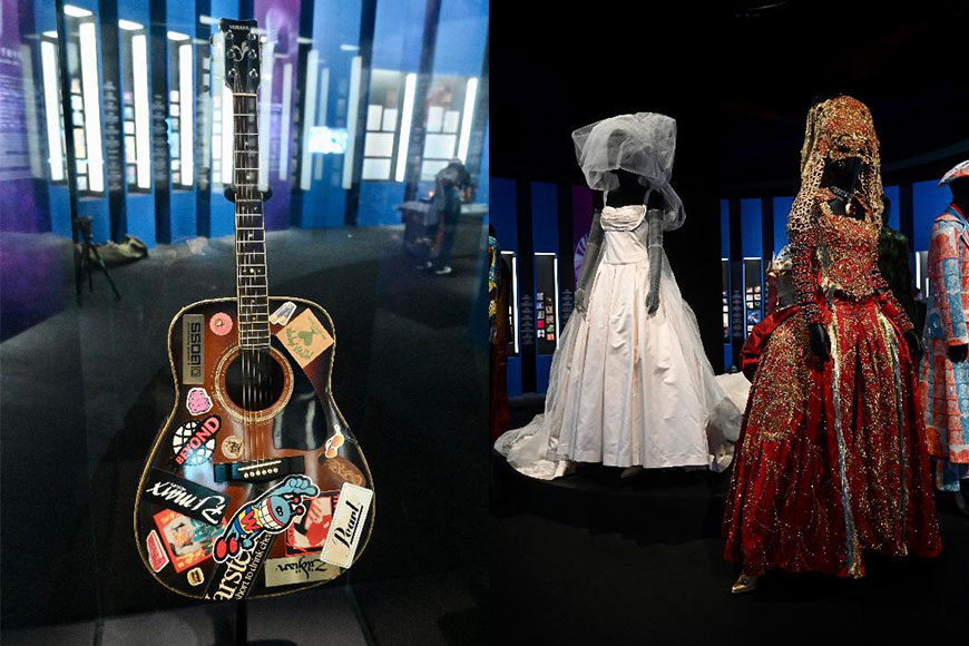 香港的流行音樂隨著不同年代更替而轉化甚大,從 50、60 年代蘊含粵曲風格的歌曲、70 年代由電台帶動的粵語流行曲、80 年代受影視媒體而發展的流行歌曲創作等,都盡顯不同時期的社會文化。及至 90 年代,社會富裕繁榮,市民更願意投放金錢支持本地音樂,香港流行音樂的發展進入高峰時期。展覽中可見當時著名歌手羅文的獎座、《獅子山下》歌詞手稿、黃家駒的木吉他、梅艷芳舞台服飾等展覽品。