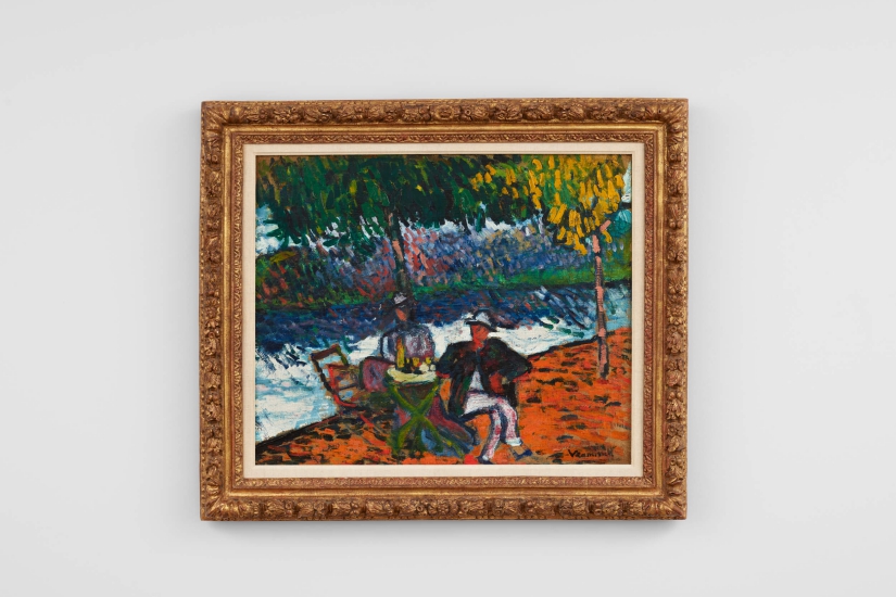 如果你有參觀香港藝術館近期的超現實主義展覽,必定會被胡安·米羅的作品所驚艷。本次展覽展出他於 1924 年作的《吻》,風格以一貫的自創符號及色塊構成,在開放的背景之上化事物為彩色線條和形狀,線與形在卵形和沙漏形中交織起來,而他繪畫這種抽象生物形態也成為他的標誌性風格。莫里斯·德·烏拉孟克的《蛙塘》體現了對色彩和形式的創新運用,他用生動、濃厚的色調強調大膽的抽象形狀和黑色輪廓,這一突破使得藝術家成為野獸派的領軍人物之一。