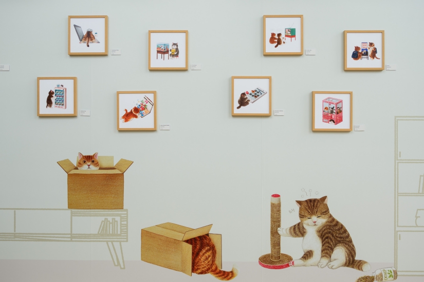 這次展覽共展出 46 幅作品,其中更有 3 幅特別以香港為主題,讓大家與貓咪們霓虹燈下載歌載舞,一起遊走充滿活力的香港。作品中的貓咪過著千奇百趣的生活,趣緻模樣簡直融化一眾貓奴的心。