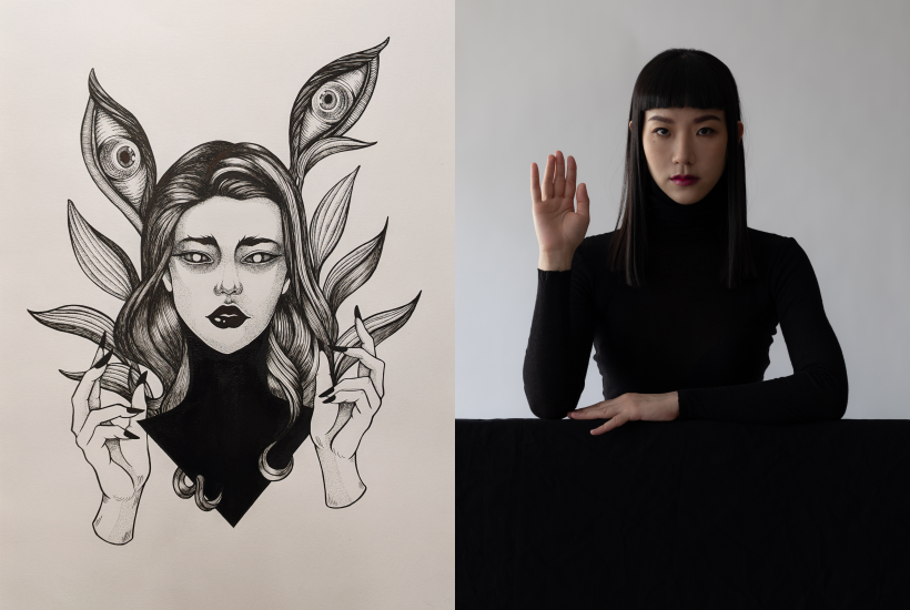 Cynthia Omi 是一名時尚圖形設計師,亦是一名插畫家過往曾參與香港本地電影的電影片頭插畫,亦創作了很多壁畫,現時她主要專注於紋身創作。基於對自然界動植物的喜愛與好奇,作品常常加入了自己對大自然的幻想,也會運用動植物的特微為自己的作品說話。