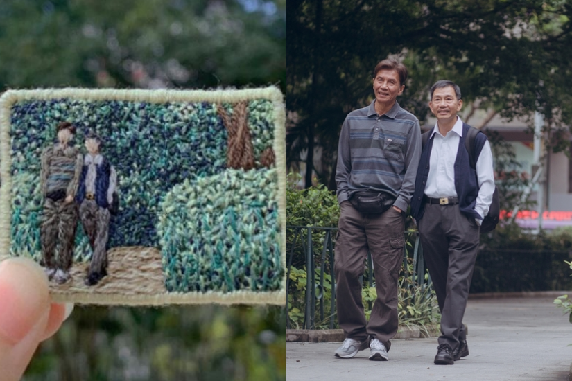 除了經典之作,阿羿亦非常留意本地新戲,過往就曾繡過《手捲煙》、《叔叔》等近年電影。就以《叔叔》這一作品來看,袁富華與太保於綠意盎然的公園散步一幕,已經用上近 10 種綠色繡花線,使得畫面更具層次感。