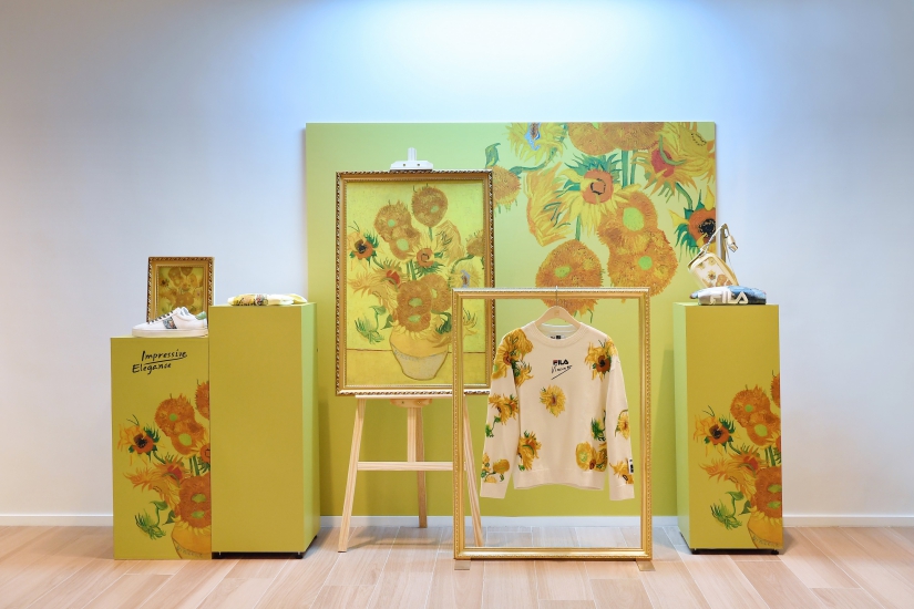 這次展覽以「Impressive Elegance」為主題,以藝術裝置形式展示部分聯乘產品,以及其核心設計。此外, FILA 更邀請了著名跨媒體藝術家林宜輝 Ed Lam,利用光雕投影技術,讓大家在彷如置身在熱情洋溢的向日葵花海中。