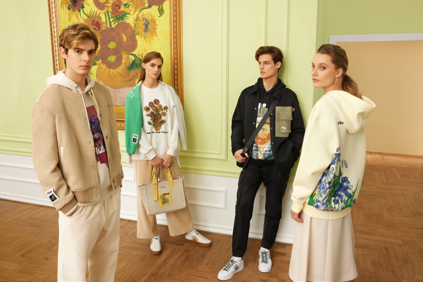 以《Sunflowers》為靈感的女裝衛衣、針織上衣和男裝T裇等單品結合刺繡工藝,使每件單品都更具立體感;採用《Vase with Gladioli and Chinese Asters》元素的單品,則以互補色設計突顯畫作的強烈色彩對比,系列亦巧妙地將另外多幅梵高的著名作品,如《Vase of Flowers》、《Self-Portrait with Grey Felt Hat》和《Old Vineyard with Peasant Woman》等結合於型格的運動時裝中,創造出令人意想不到的時尚精品。