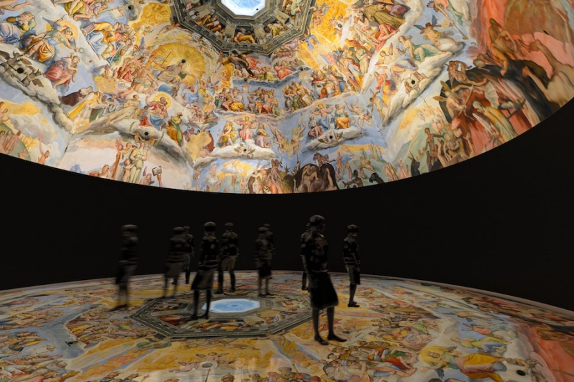 而展覽最為注目的,定必是聖母百花大教堂穹頂壁畫展區。主辦方連同跨國團隊將意大利世界文化遺產 – 百花大教堂穹頂壁畫「末日審判」移師台灣。通過獨家取得高清底片,透過數位多媒體,動畫團隊採用透視法讓圓形穹頂無限伸延,搭配最新巨蛋投影技術,參觀者可近距離觀賞所有畫作細節,感受前所未有的視覺震撼!